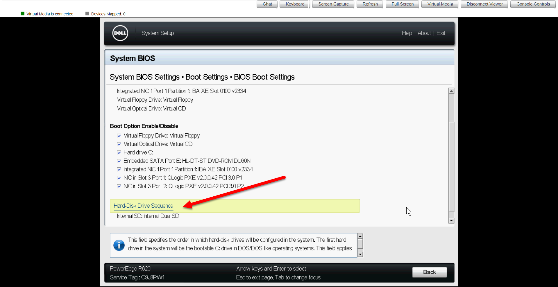 Replacing the lower capacity cards with higher capacity cards was quick. I opened up the case, removed the old cards, installed the new 16 GB SD Cards, then booted up the server. I loaded up an ISO image for ESXi using the virtual CD-ROM via the iDRAC. However, during the installation portion, the SD Cards were not recognized.